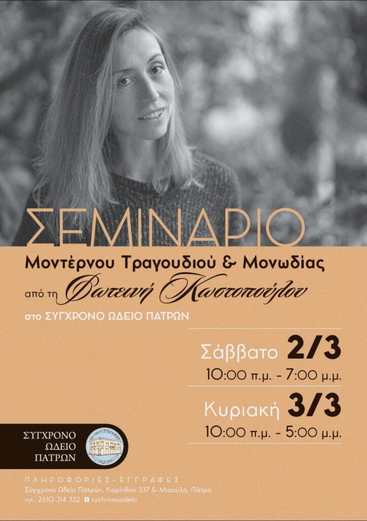 Το 2013 ξεκίνησε η ιδιαίτερη συνεργασία μου με το ΔΗΠΕΘΕ ΠΑΤΡΑΣ, όταν υπό τη διεύθυνση του Θοδωρή Αμπαζή, δημιουργήθηκε το λυρικό εργαστήρι του ΔΗΠΕΘΕ για να αξιοποιηθεί το πολύ αξιόλογο καλλιτεχνικό δυναμικό της πόλης. Ο υπεύθυνος του εργαστηρίου Χαράλαμπος Γωγιός μου εμπιστεύτηκε ενα μηνιαίο σεμιναριακού τύπου διήμερο με γενικότερο τίτλο “ανατομία της φωνής”. Με μεγάλη χαρά είδα πολλούς από τους συμμετέχοντες να εξελίσσονται στο νέο αίμα της ΕΛΣ και του λυρικού θεάτρου γενικότερα. Η διετής πολύτιμη εμπειρία αυτών των σεμιναρίων γέννησε νέες συνεργασίες στην πόλη, ιδιαίτερα με το ΣΥΓΧΡΟΝΟ ΩΔΕΙΟ ΠΑΤΡΩΝ, όπου παραδίδω ένα ετήσιο σεμινάριο με μεγάλη ανταπόκριση από ενεργούς συμμετέχοντες και ακροατές, για την οποία είμαι ευγνώμων. Ευχαριστώ πολύ τη διεύθυνση του ωδείου για τη άρτια οργάνωση και τη θερμή φιλοξενία.